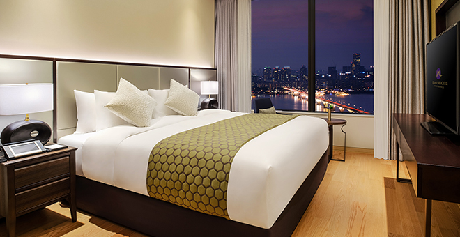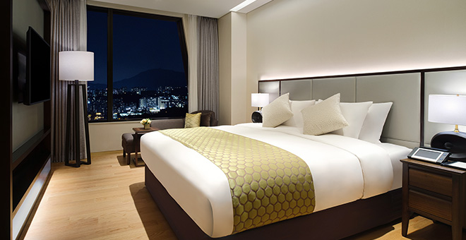 비즈니스와 여행의 바쁜 일정을 마치고 여유로운 휴식을 즐기실 수 있는 넉넉한 공간을 가진 객실입니다.
