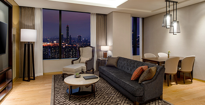 펜트하우스에서는 서울 도심의 멋진 스카이라인을 감상하실 수 있는 최상급 객실타입으로 우아함을 선사합니다.